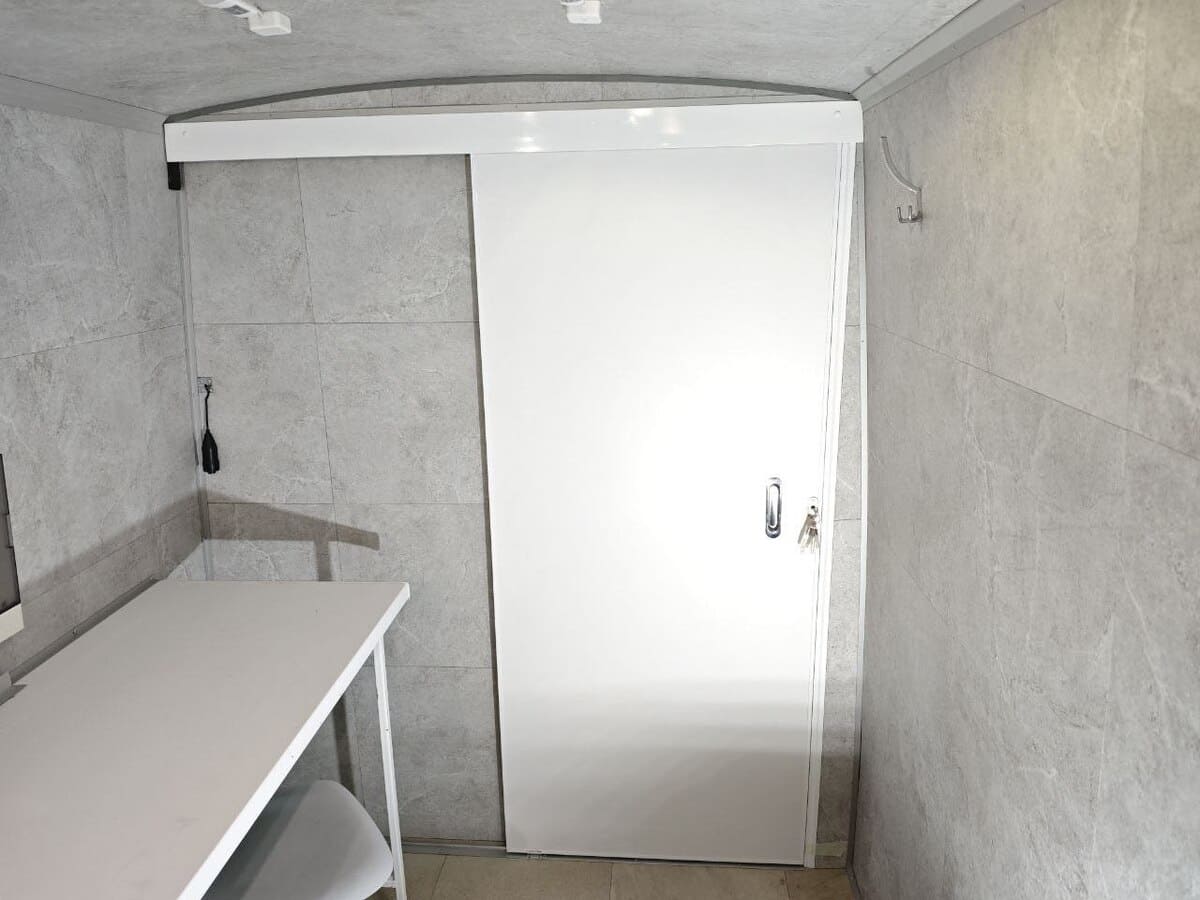 Система подвеса комплектуется роликами повышенной грузоподъемности, рассчитанными на вес полотна до 120 кг, что особенно актуально при увеличенной толщине свинцового слоя. Для стабильной и контролируемой работы дверей устанавливаются доводчики, обеспечивающие плавное закрывание без ударных нагрузок, что снижает износ фурнитуры и уменьшает риск перекоса. Базовый цвет покрытия - белый (RAL 9016), по запросу возможно изготовление дверей в других оттенках для согласования с отделкой рентген-кабинета, КТ-отделения или процедурной.