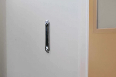 Система подвеса комплектуется роликами повышенной грузоподъемности, рассчитанными на вес полотна до 120 кг, что особенно актуально при увеличенной толщине свинцового слоя. Для стабильной и контролируемой работы дверей устанавливаются доводчики, обеспечивающие плавное закрывание без ударных нагрузок, что снижает износ фурнитуры и уменьшает риск перекоса. Базовый цвет покрытия - белый (RAL 9016), по запросу возможно изготовление дверей в других оттенках для согласования с отделкой рентген-кабинета, КТ-отделения или процедурной.