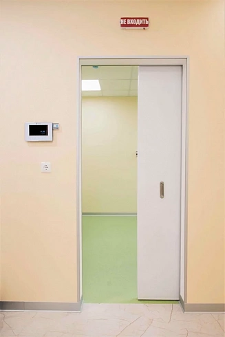 Плавность и бесшумность хода важны для режимных кабинетов, где требуется частое открывание и закрывание двери в течение смены. Конструкция рассчитана на интенсивную эксплуатацию в рентген-кабинетах, отделениях компьютерной томографии, стоматологических рентген-кабинетах, маммографических кабинетах, а также в помещениях для промышленной радиографии и дефектоскопии металлоконструкций. Внешний вид двери позволяет использовать ее в зонах с открытым доступом пациентов без нарушения общего дизайна отделения.