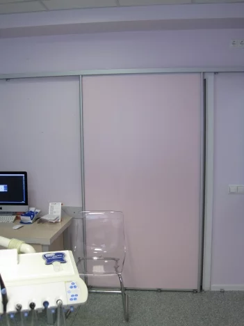 Откатная система применяется там, где использование стандартных распашных рентгенозащитных дверей затруднено из-за узких коридоров, ограниченного пространства перед проемом или высокой проходимости. В стоматологических рентген-кабинетах, рентгенологических отделениях поликлиник, небольших диагностических центрах и кабинетах мобильной дефектоскопии откатная створка позволяет освободить зону перед входом, облегчить маневрирование каталок, кресел и оборудования, а также снизить риск повреждения стен и мебели при открывании створки.
