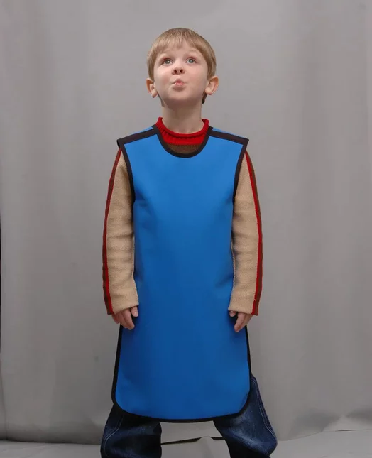 Детский рентгенозащитный фартук, изготовлен с использованием высококачественных материалов и рентгенозащитного поливинилхлорида, что значительно снижает массу изделия и обеспечивает комфорт при эксплуатации детьми.На спине имеется удобная застёжка.