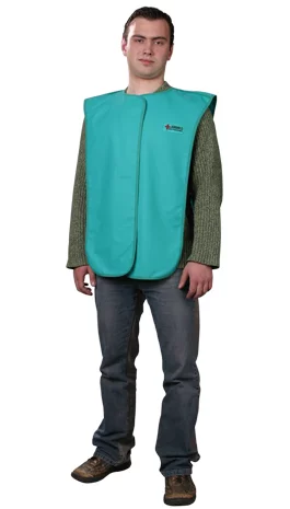 Фартук покрывает переднюю часть тела пациента от горла до голени, включая плечи и ключицы, надежно защищая область шеи, плечи и верхнюю часть грудной клетки. Он изготовлен из высококачественных материалов и отличается высокой эффективностью защиты от рентгеновского излучения.