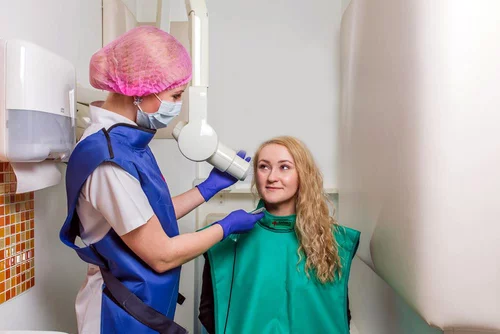 Рентгенозащитный стоматологический фартук предназначен для защиты пациента при проведении рентгеностоматологических исследований как на пленочных аппаратах, так и на рентгеновизиографах. Изделие закрывает переднюю часть тела, обеспечивая защиту области гонад и костей таза. Благодаря встроенной защитной стойке отсутствует необходимость в дополнительном рентгенозащитном воротнике — щитовидная железа прикрыта полностью. Фартук эффективно снижает воздействие рассеянного излучения.
