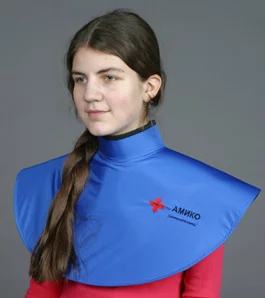Пелерина предназначена для защиты щитовидной железы и внутренних органов пациента в районе плечевого пояса и верхней части грудной клетки при черепных и стоматологических исследованиях.