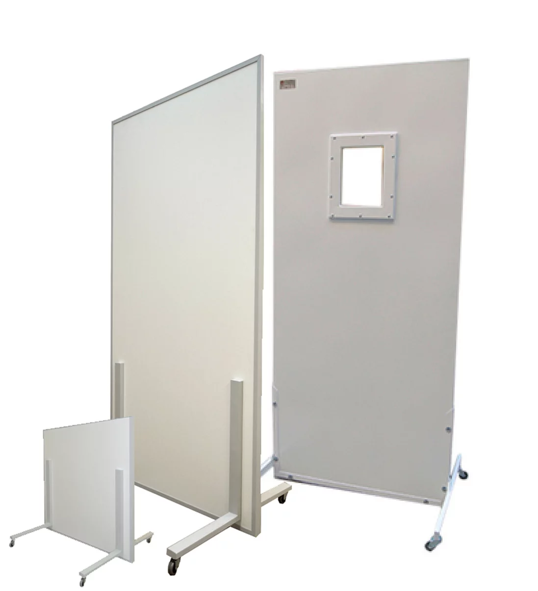 Большие мобильные рентгенозащитные ширмы применяются при оснащении рентген-кабинетов, КТ- и флюорографических отделений, процедурных с рентген-оборудованием, а также помещений промышленной дефектоскопии. Конструкция используется как дополнительный экран для защиты персонала и сопровождающих лиц от рассеянного и вторичного ионизирующего излучения при проведении исследований и работ с источниками рентгеновского излучения.