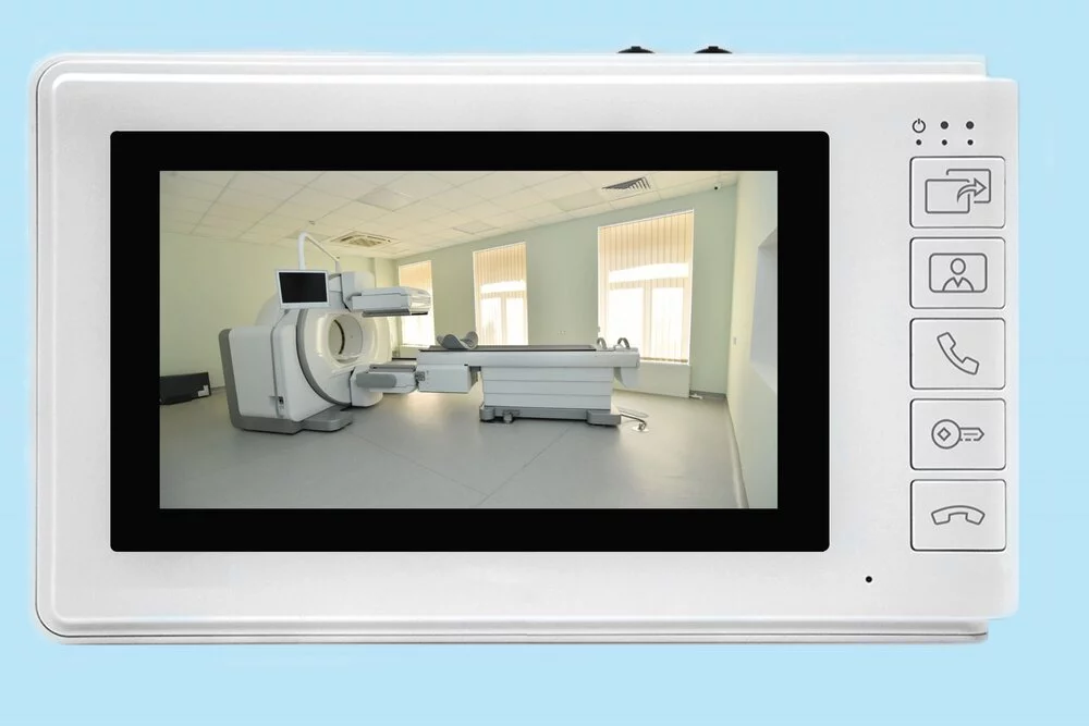 Дополнительно система оснащена встроенным каналом двусторонней звуковой связи, что дает возможность врачу и персоналу общаться с пациентом или оператором установки из защитной комнаты. Это решает задачу голосового оповещения и инструктажа без покупки отдельной переговорной системы, упрощает монтаж и сокращает количество устройств в рентген-кабинете.