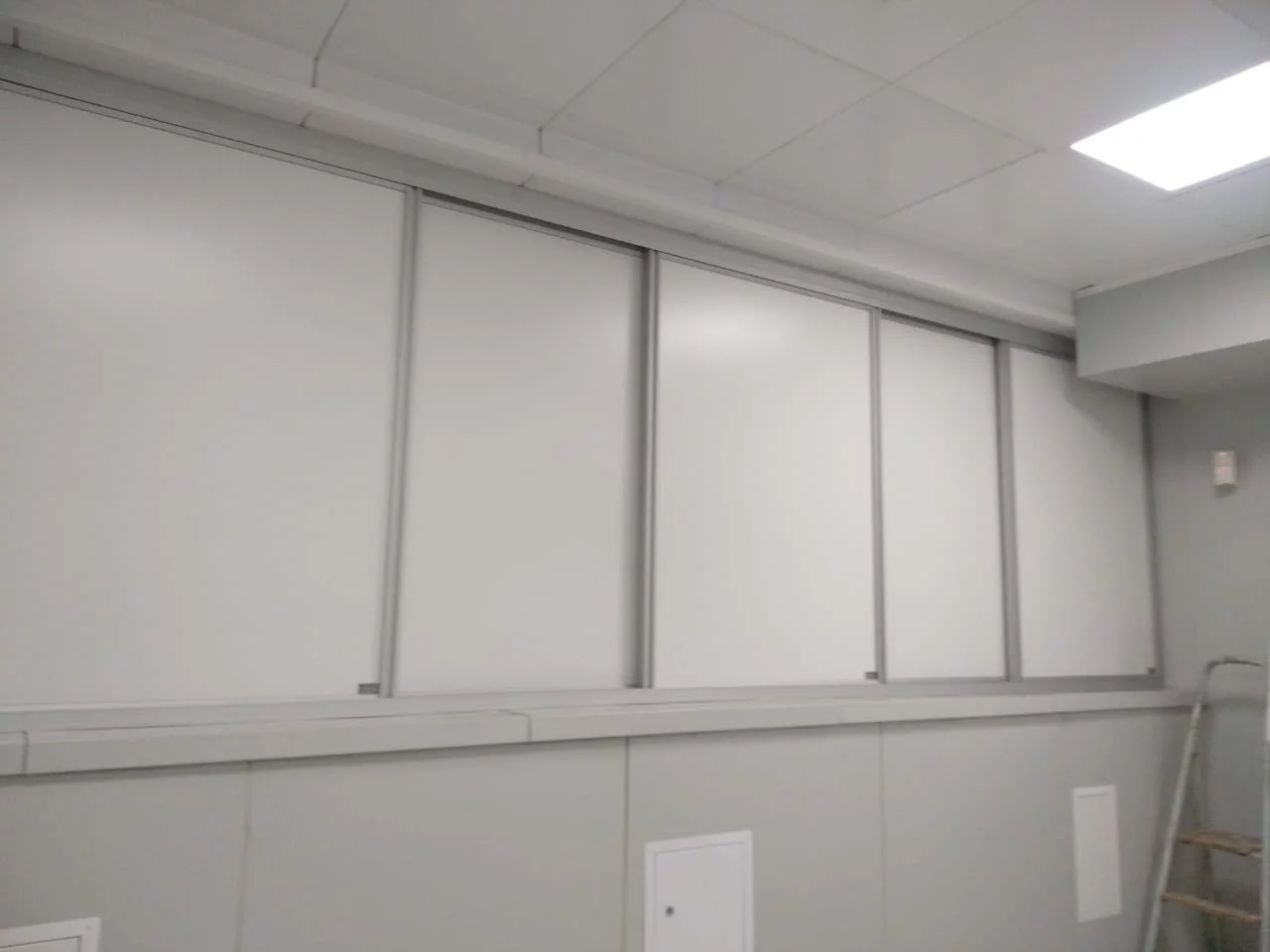 Несущая рама и направляющие изготавливаются из алюминиевого профиля с порошковой окраской. Цвет подбирается по согласованию с заказчиком, что важно при интеграции ставен в уже оформленные рентген-кабинеты, КТ-отделения и диагностические зоны. Алюминиевый профиль снижает общий вес конструкции и устойчив к коррозии в условиях регулярной влажной уборки.