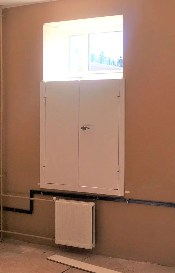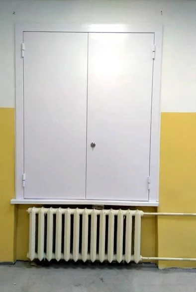 Ставни выполняются в распашном исполнении, по принципу дверей, что дает возможность открывать проем полностью или частично, регулируя доступ дневного света и визуальный обзор без снижения уровня радиационной защиты в закрытом положении. Полотна могут быть как глухими, так и сконструированными с учетом необходимости полного открытия проема, если это требуется по технологии работы кабинета или особенностям планировки.